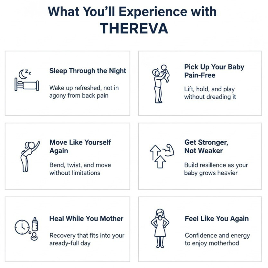A: Yes. If you're still in pain, it means your body hasn't fully cleared the swelling and fluid that built up in your lower back during pregnancy. THEREVA works regardless of how long postpartum you are—we have customers who are 12-18+ months out who found significant relief. Your body wants to heal, it just needs the right support.